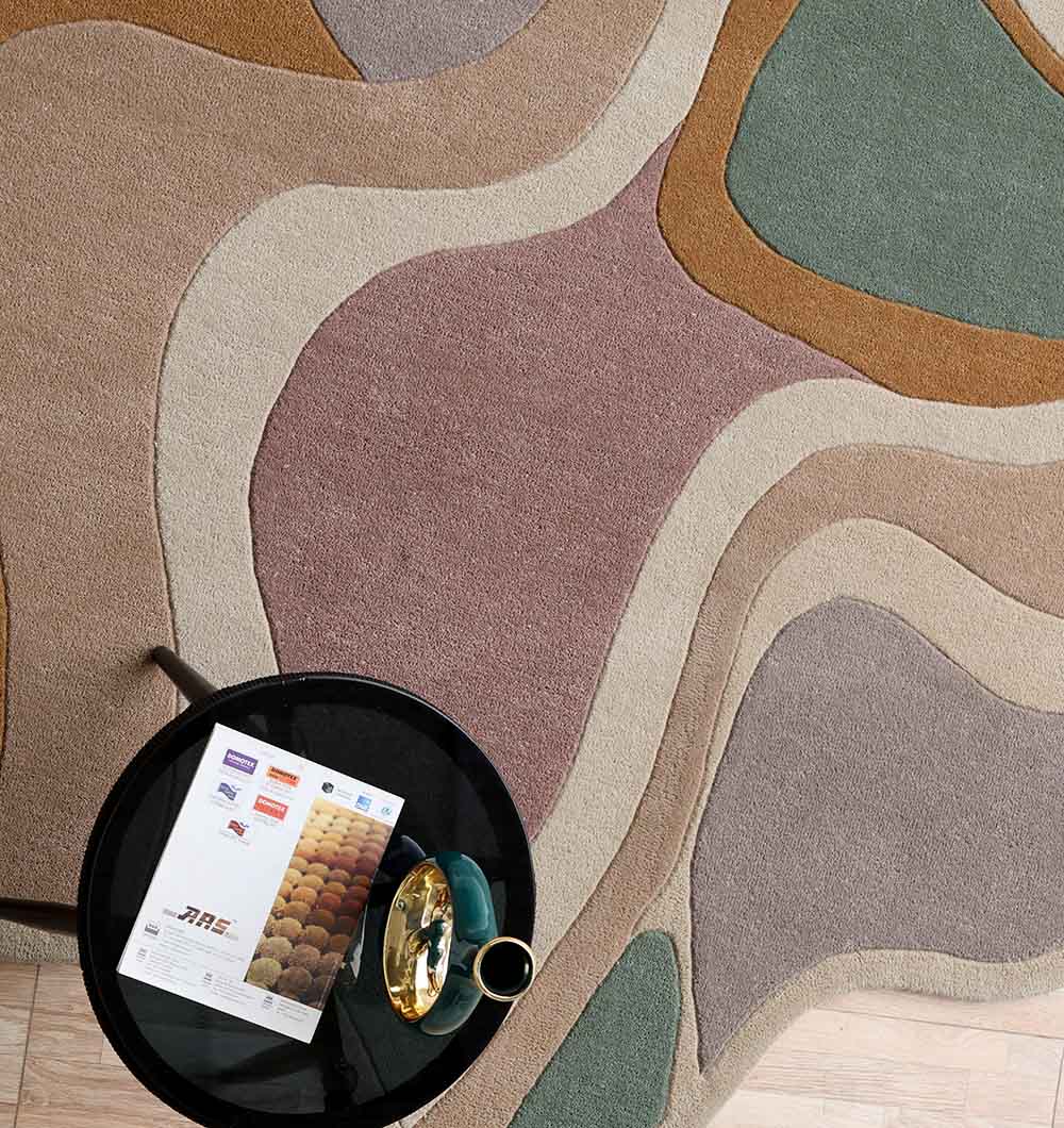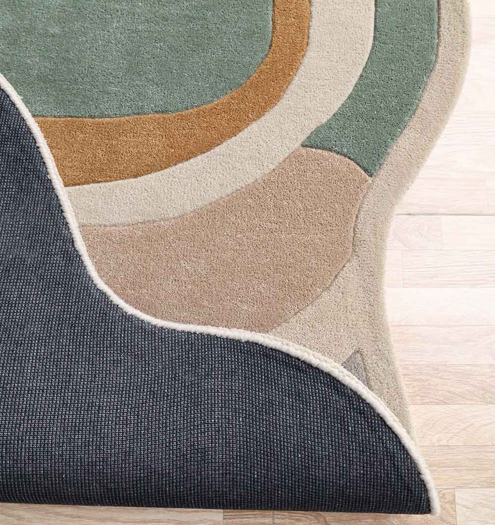 The HTW-127 Multicolor Shaped Area Rug is an artistic centerpiece designed to bring a bold, organic aesthetic to your home decor. This 200 cm statement piece features a unique, fluid silhouette with a sophisticated "topographic" design, blending earthy ochre, dusty rose, sage green, and cool grey in wavy, layered ripples. Meticulously handcrafted from a premium heavy-duty blend of 80% wool and 20% cotton, it offers a substantial weight of 20 kg for exceptional floor stability and durability. With a dense 1.5 cm pile height, this rug provides luxurious underfoot comfort and superior acoustic dampening. Its non-traditional form and harmonious palette make it the perfect focal point for contemporary living rooms, creative studios, or modern bedrooms seeking a high-quality, hand-finished touch.