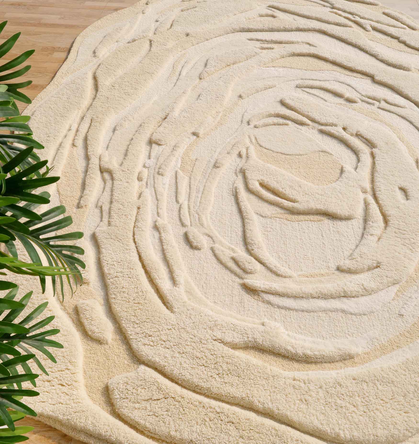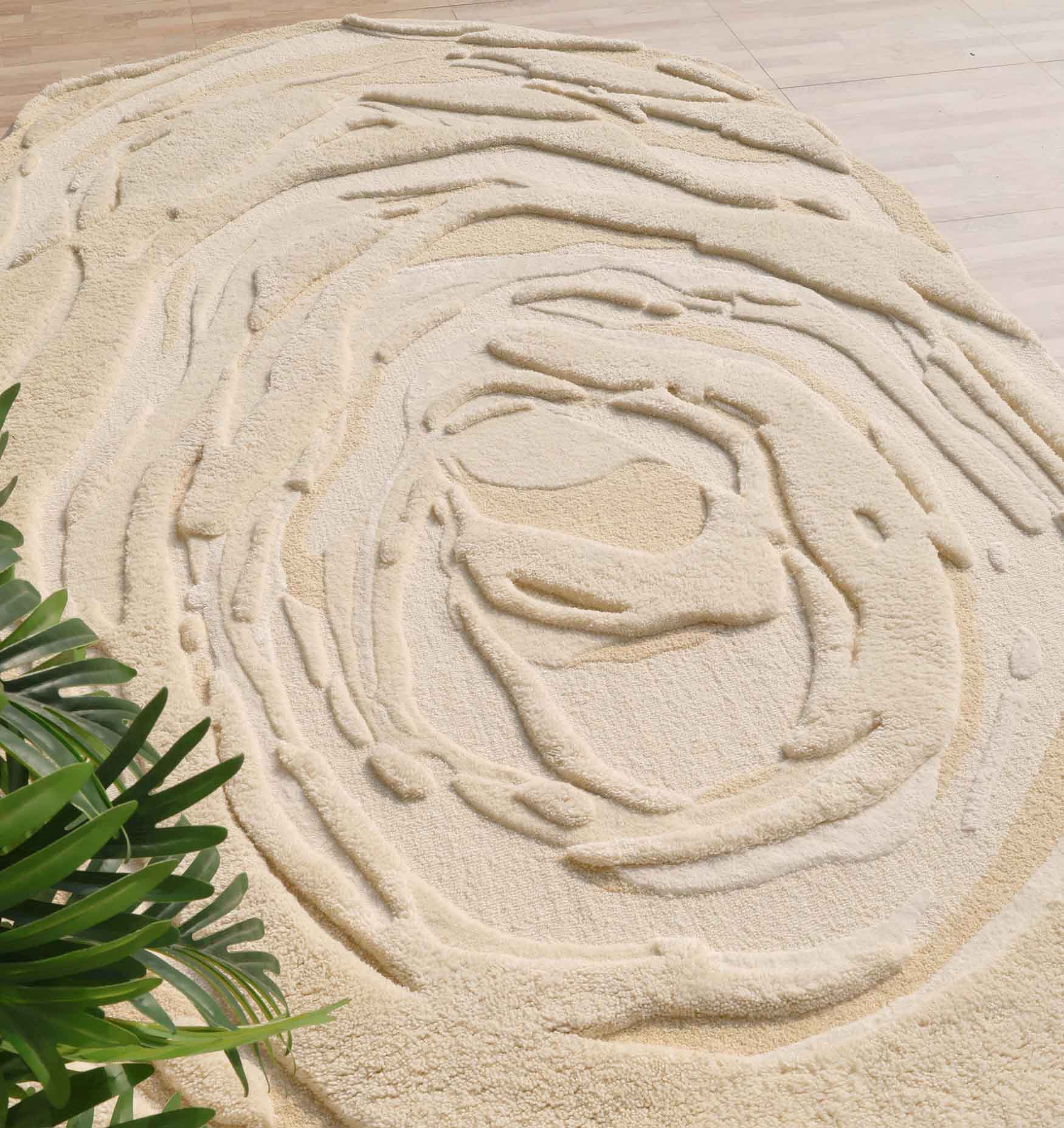 Beige Color Oval Shaped Handmade Rug - HTWV 106 (200x300cm)