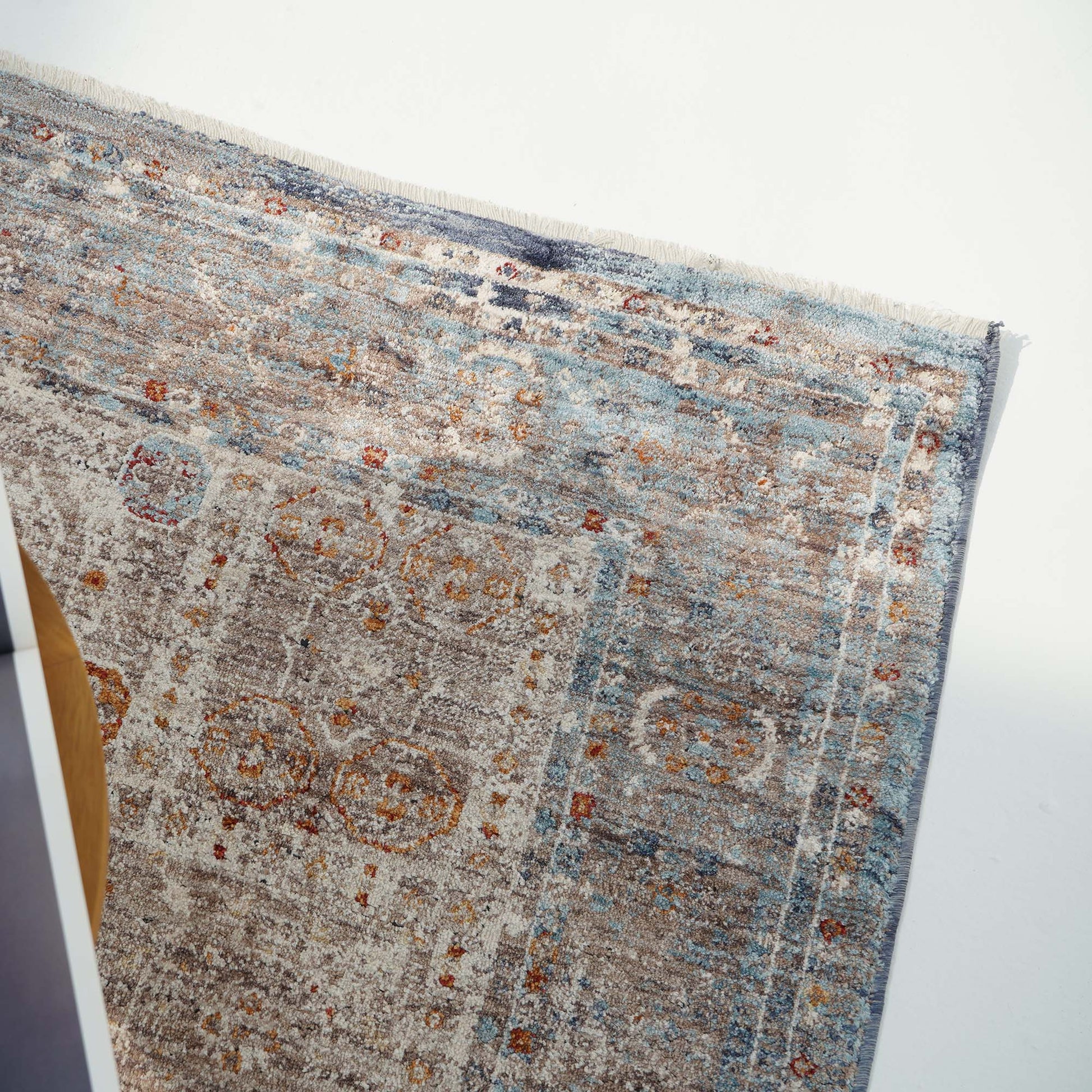 This modern area rug features a stunning cream and light blue color combination, adding a contemporary touch to any space. Crafted from 100% polyester silk material, this machine-made rug is both durable and soft underfoot. The K860A BERLIN design offers a stylish and sophisticated addition to your home.